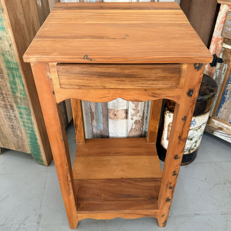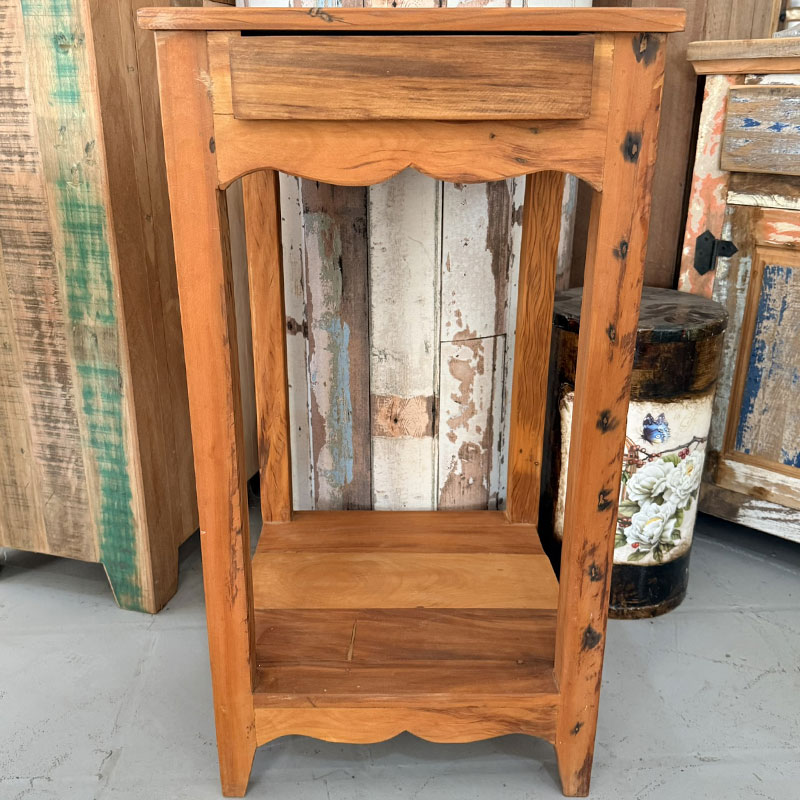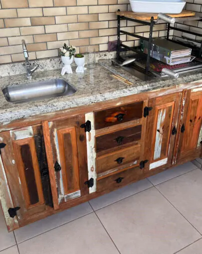 Este móvel é feito com madeira de demolição, portanto podem ter ranhuras ou marcas de prego típico do produto.