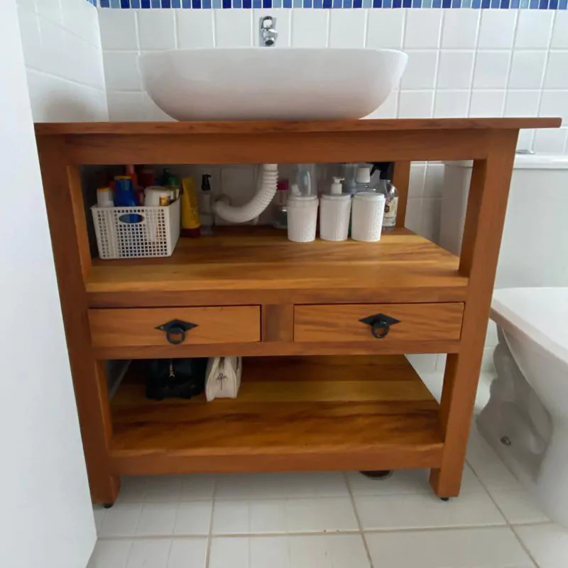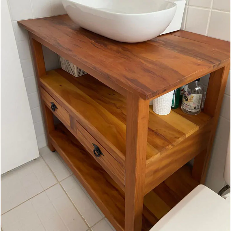 Este móvel é feito com madeira de demolição, portanto podem ter ranhuras ou marcas de prego típico do produto.