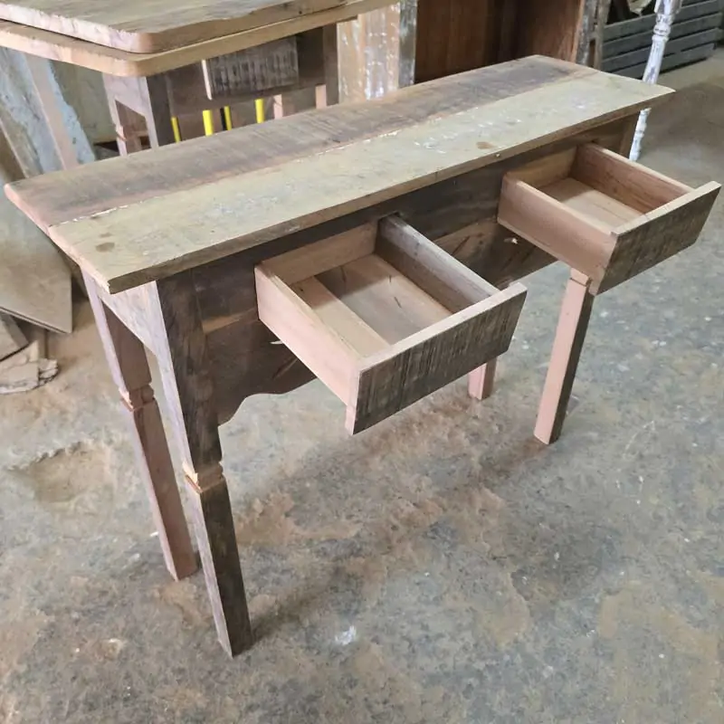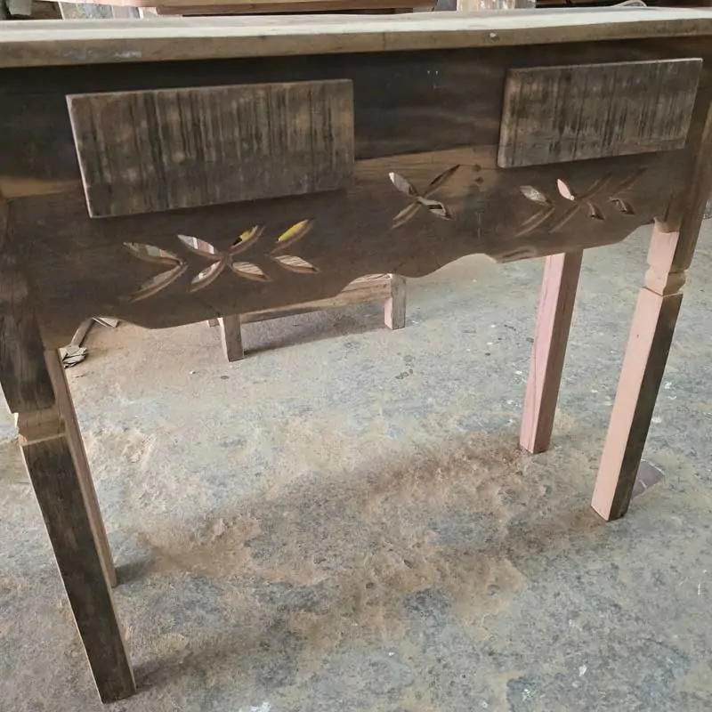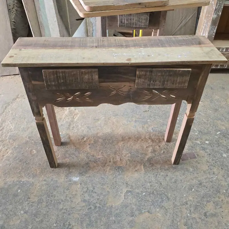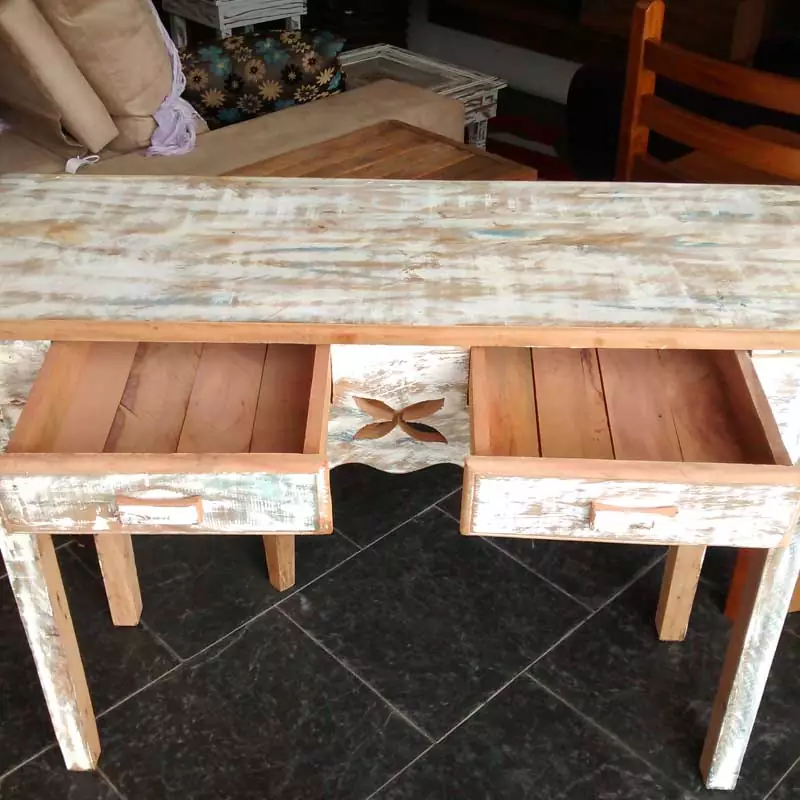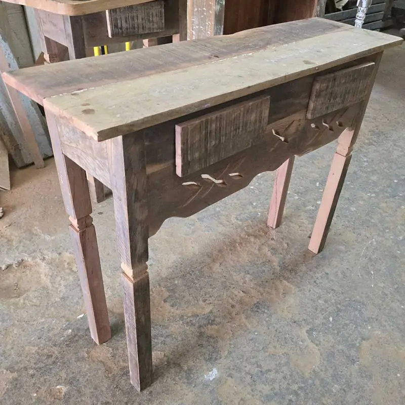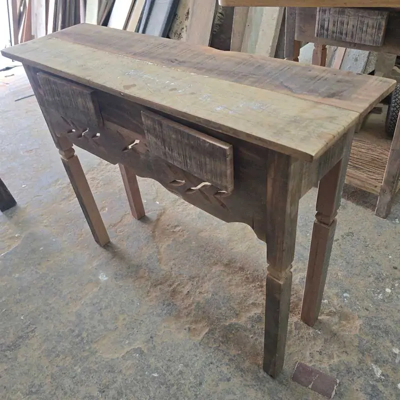 Este móvel é feito com madeira de demolição, portanto podem ter ranhuras ou marcas de prego típico do produto.