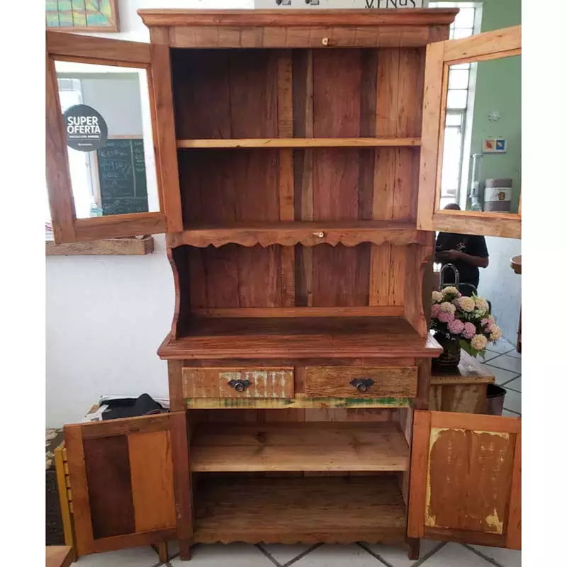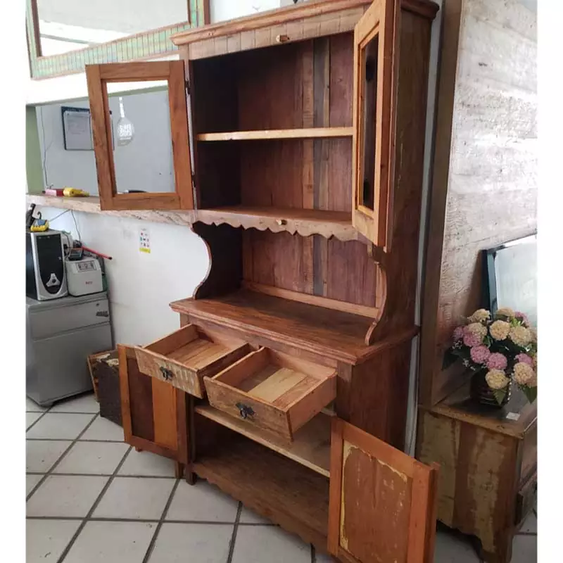 Este móvel é feito com madeira de demolição, portanto podem ter ranhuras ou marcas de prego típico do produto.