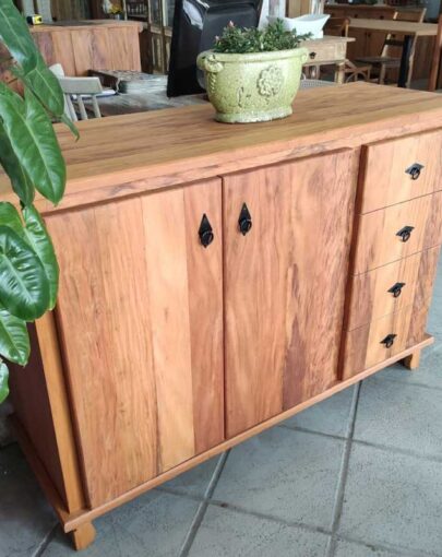 Este móvel é feito com madeira de demolição, portanto podem ter ranhuras ou marcas de prego típico do produto.