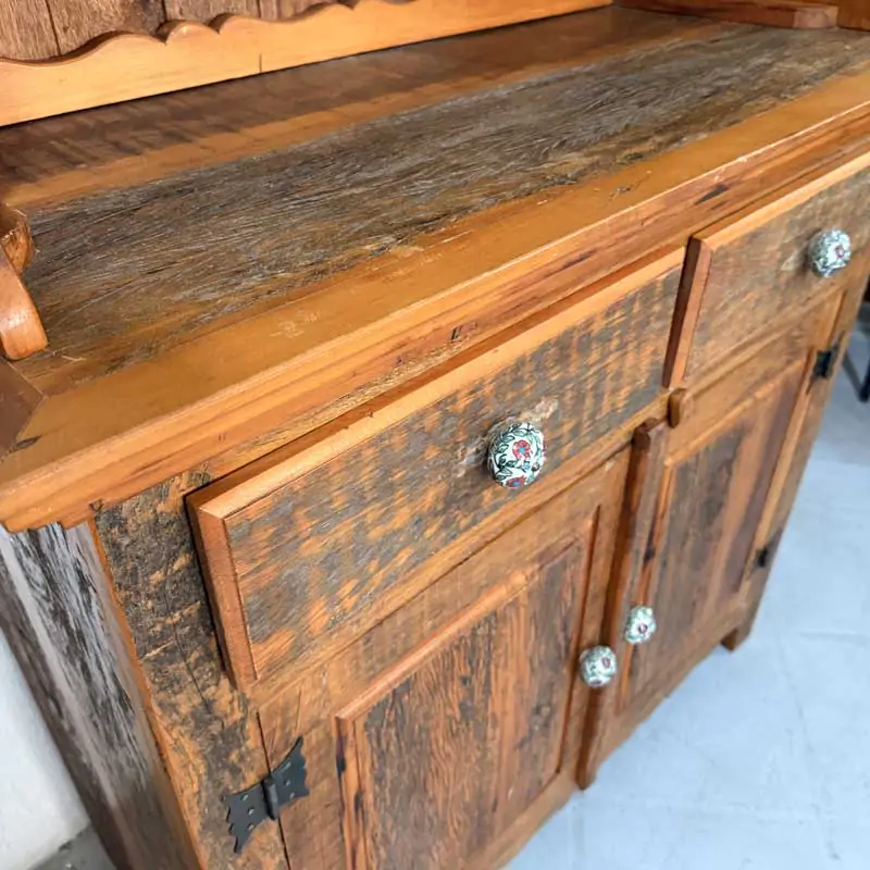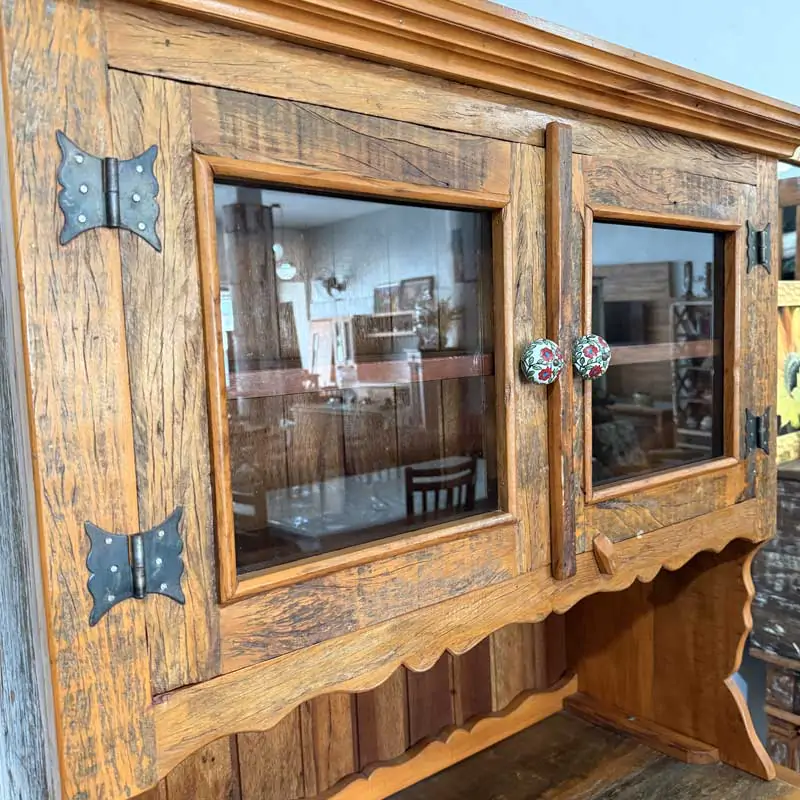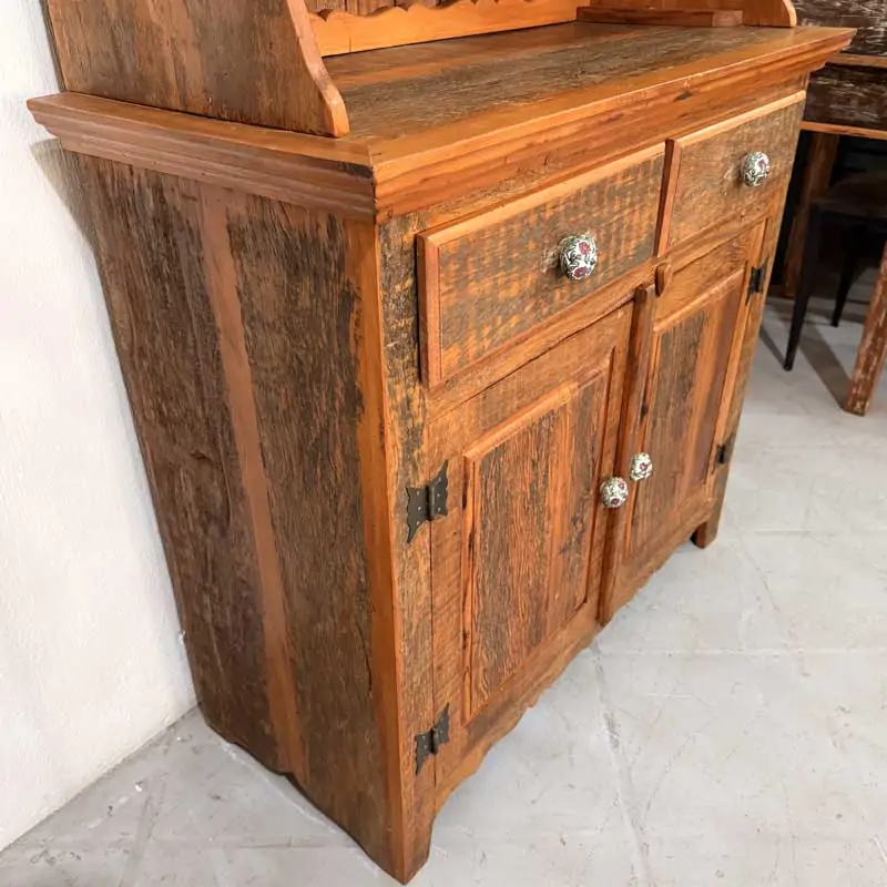 Este móvel é feito com madeira de demolição, portanto podem ter ranhuras ou marcas de prego típico do produto.