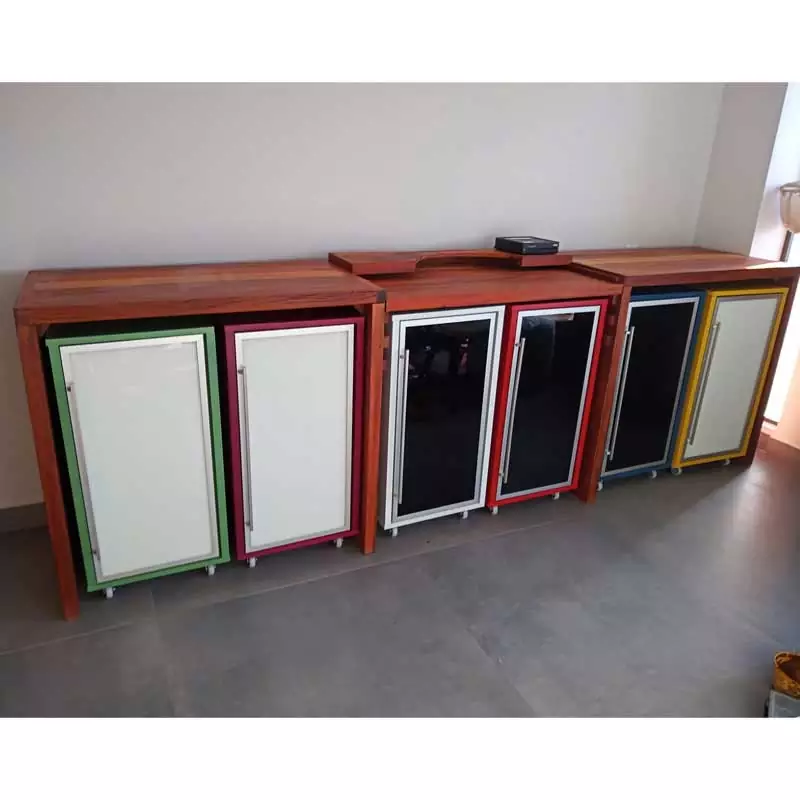Este móvel é feito com madeira de demolição, portanto podem ter ranhuras ou marcas de prego típico do produto.