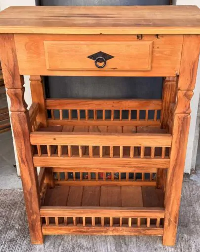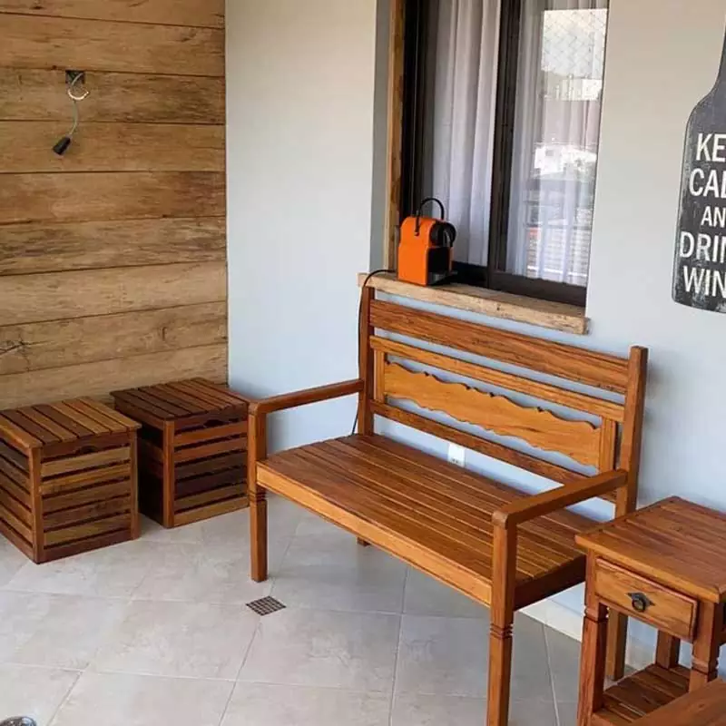 Este móvel é feito com madeira de demolição, portanto podem ter ranhuras ou marcas de prego típico do produto.