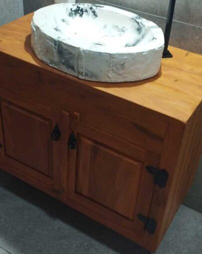 Este móvel é feito com madeira de demolição, portanto podem ter ranhuras ou marcas de prego típico do produto.