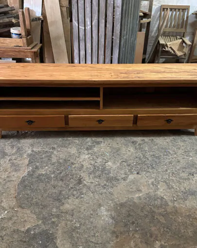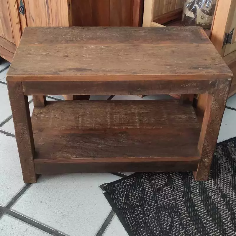 Este móvel é feito com madeira de demolição, portanto podem ter ranhuras ou marcas de prego típico do produto.