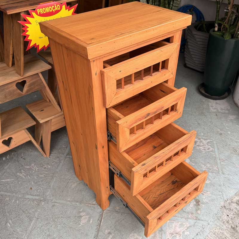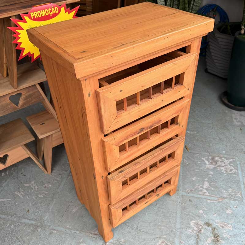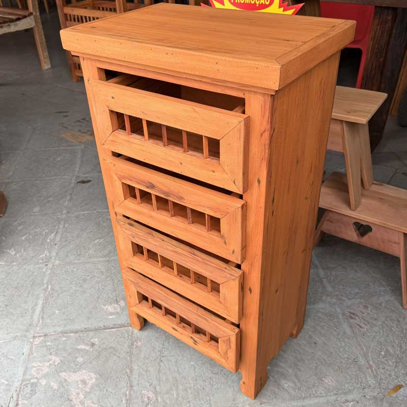 Este móvel é feito com madeira de demolição, portanto podem ter ranhuras ou marcas de prego típico do produto.