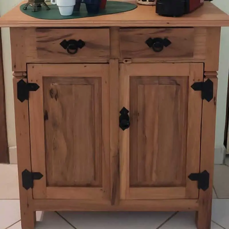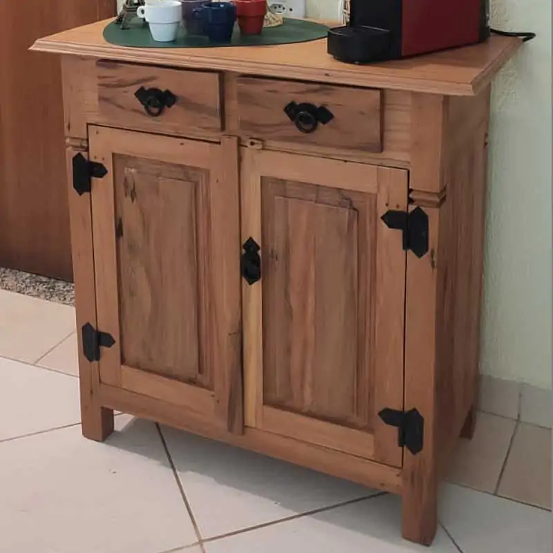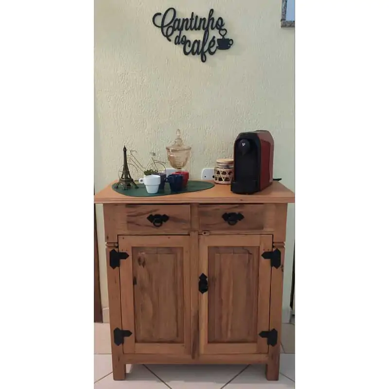 Este móvel é feito com madeira de demolição, portanto podem ter ranhuras ou marcas de prego típico do produto.