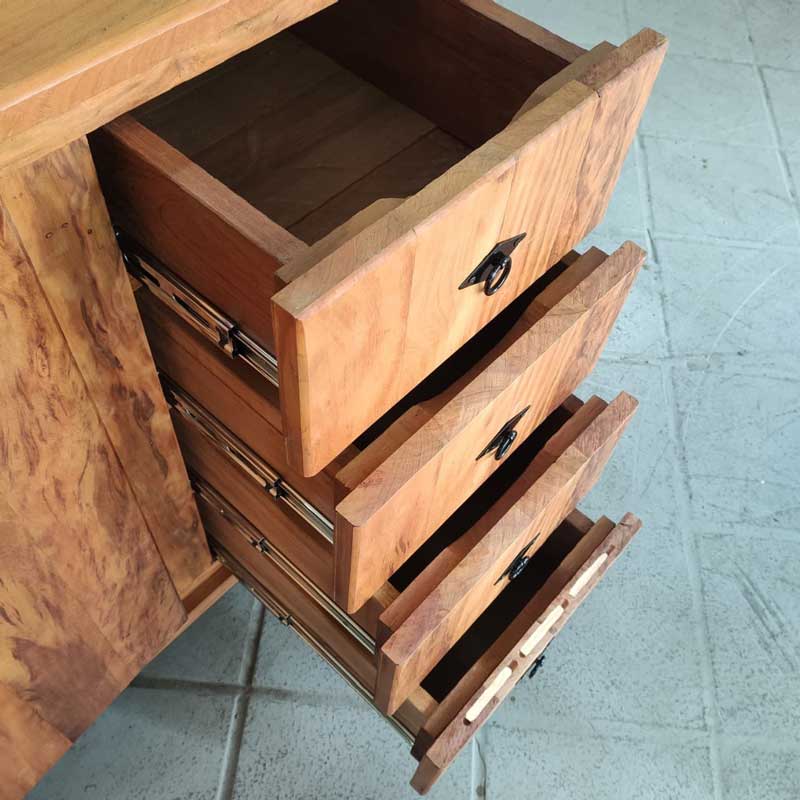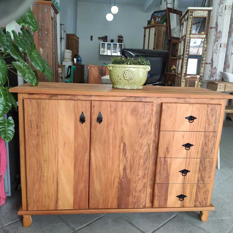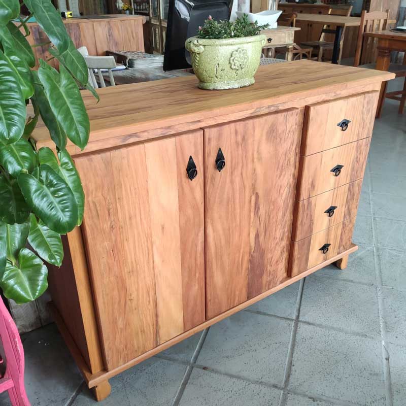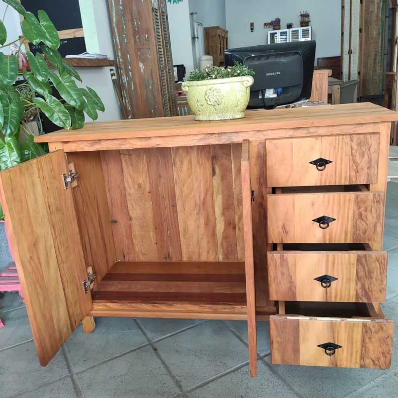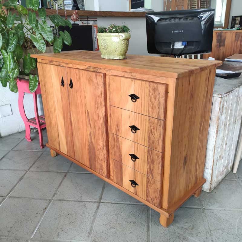 Este móvel é feito com madeira de demolição, portanto podem ter ranhuras ou marcas de prego típico do produto.