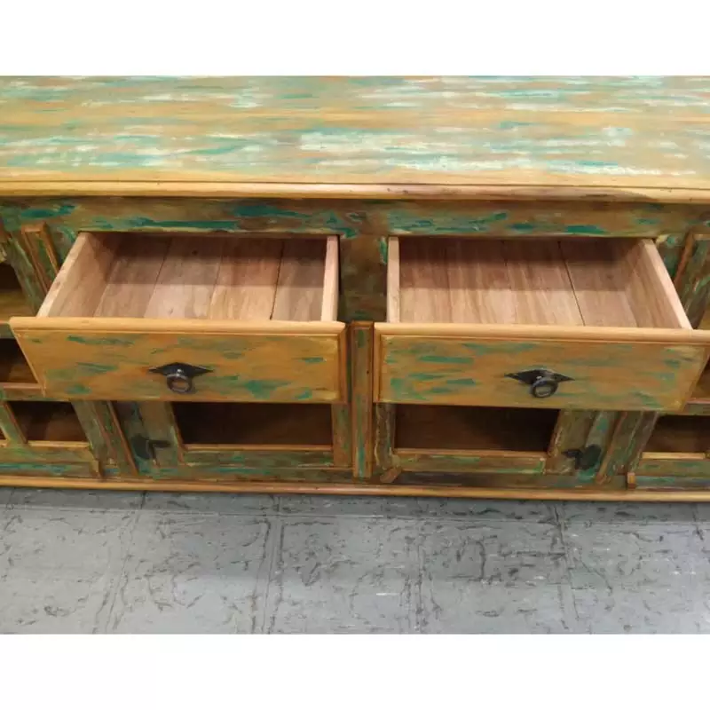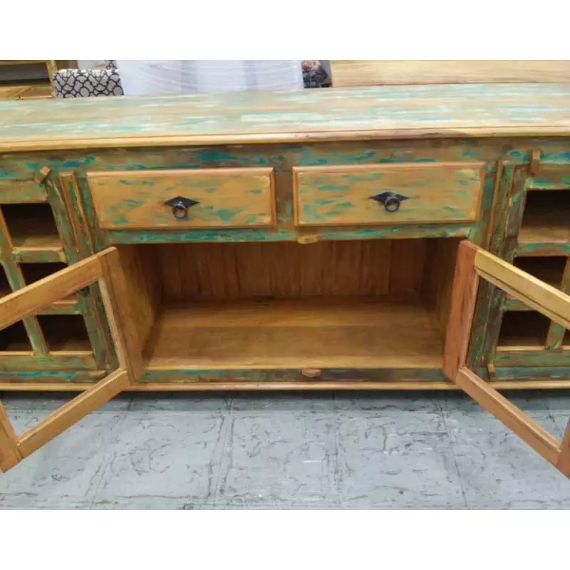 Este móvel é feito com madeira de demolição, portanto podem ter ranhuras ou marcas de prego típico do produto.