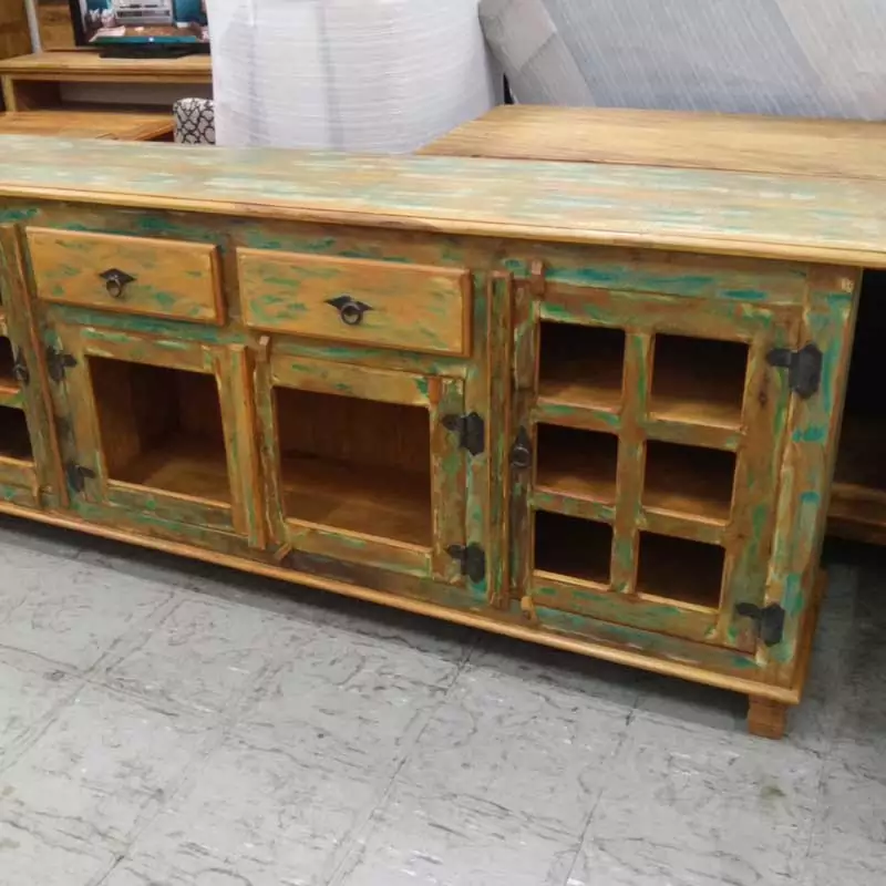 Este móvel é feito com madeira de demolição, portanto podem ter ranhuras ou marcas de prego típico do produto.