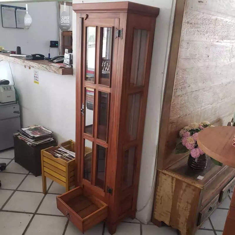 Este móvel é feito com madeira de demolição, portanto podem ter ranhuras ou marcas de prego típico do produto.