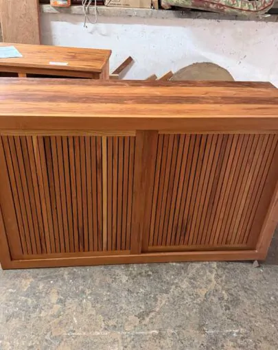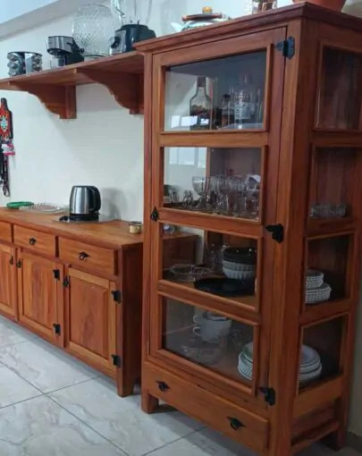 Este móvel é feito com madeira de demolição, portanto podem ter ranhuras ou marcas de prego típico do produto.