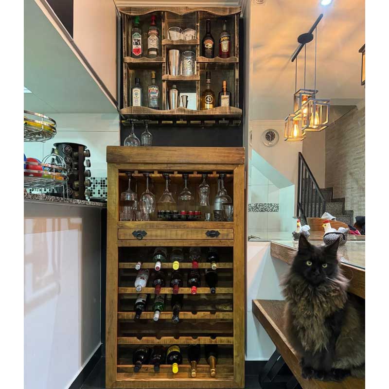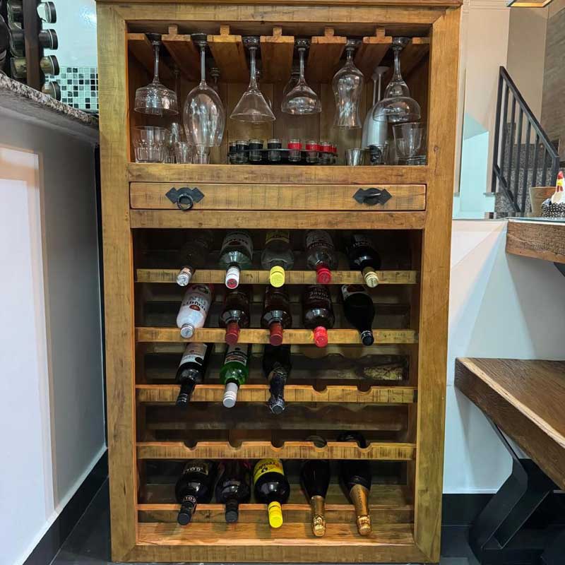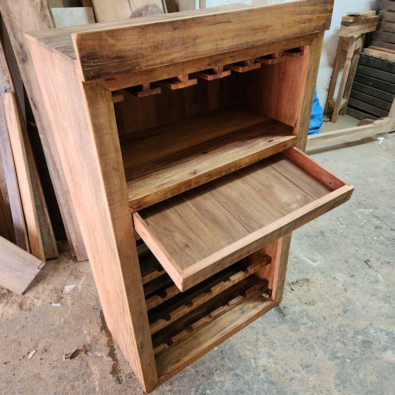 Este móvel é feito com madeira de demolição, portanto podem ter ranhuras ou marcas de prego típico do produto.