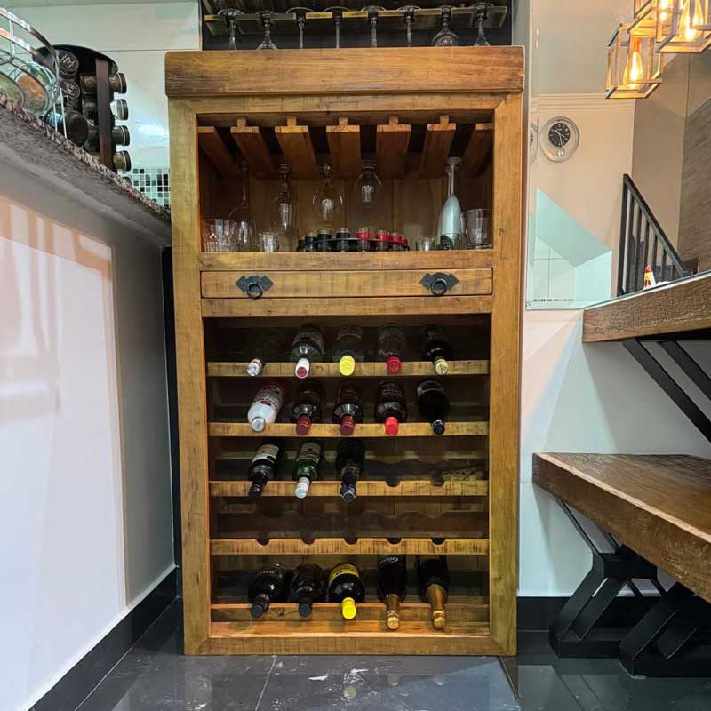 Este móvel é feito com madeira de demolição, portanto podem ter ranhuras ou marcas de prego típico do produto.