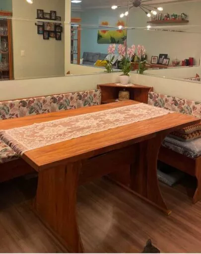 Este móvel é feito com madeira de demolição, portanto podem ter ranhuras ou marcas de prego típico do produto.