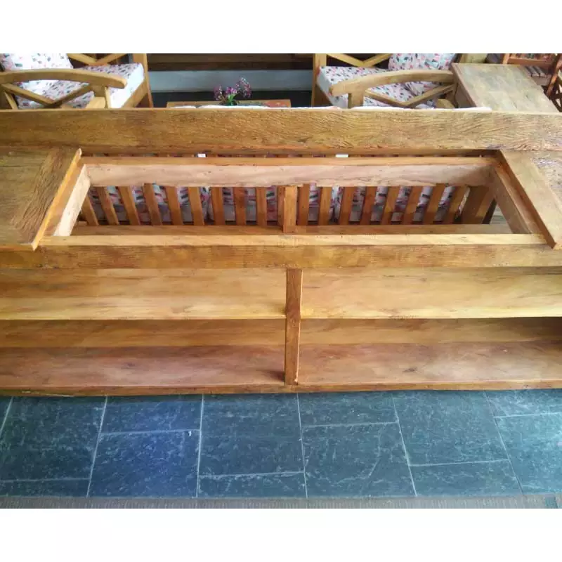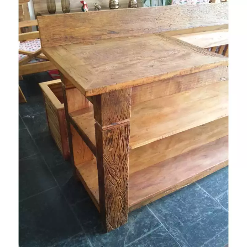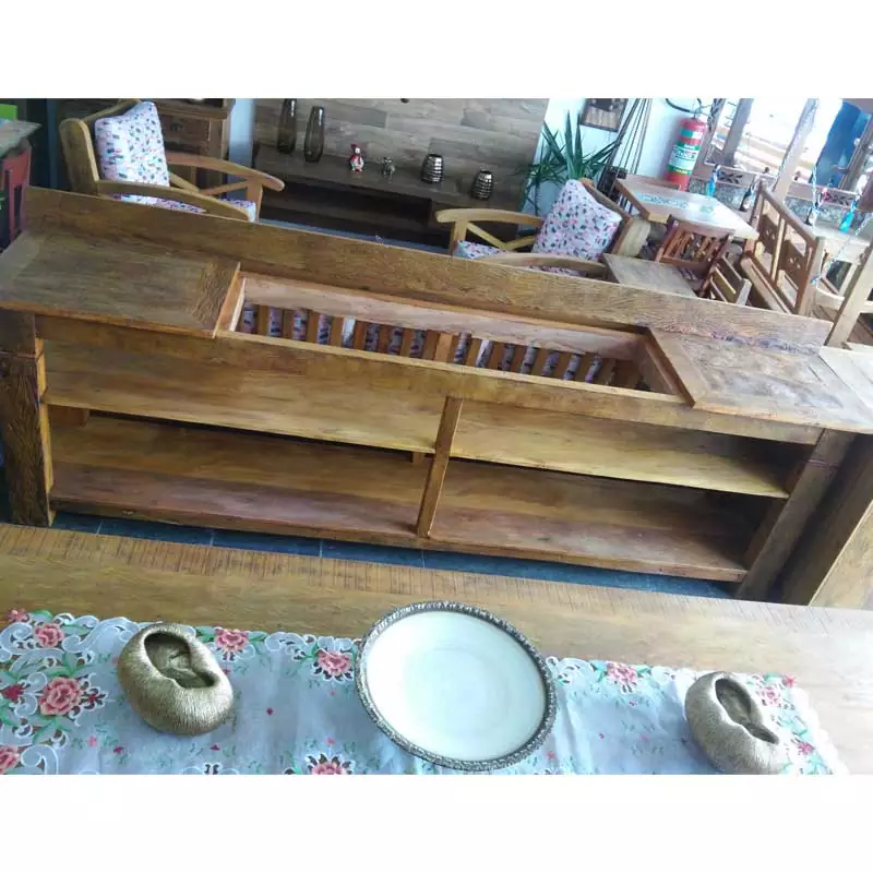 Este móvel é feito com madeira de demolição, portanto podem ter ranhuras ou marcas de prego típico do produto.