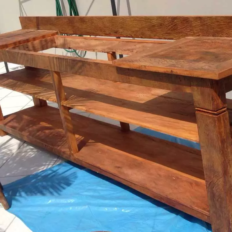 Este móvel é feito com madeira de demolição, portanto podem ter ranhuras ou marcas de prego típico do produto.