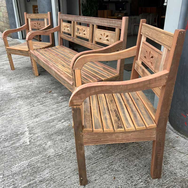 Este móvel é feito com madeira de demolição, portanto podem ter ranhuras ou marcas de prego típico do produto.