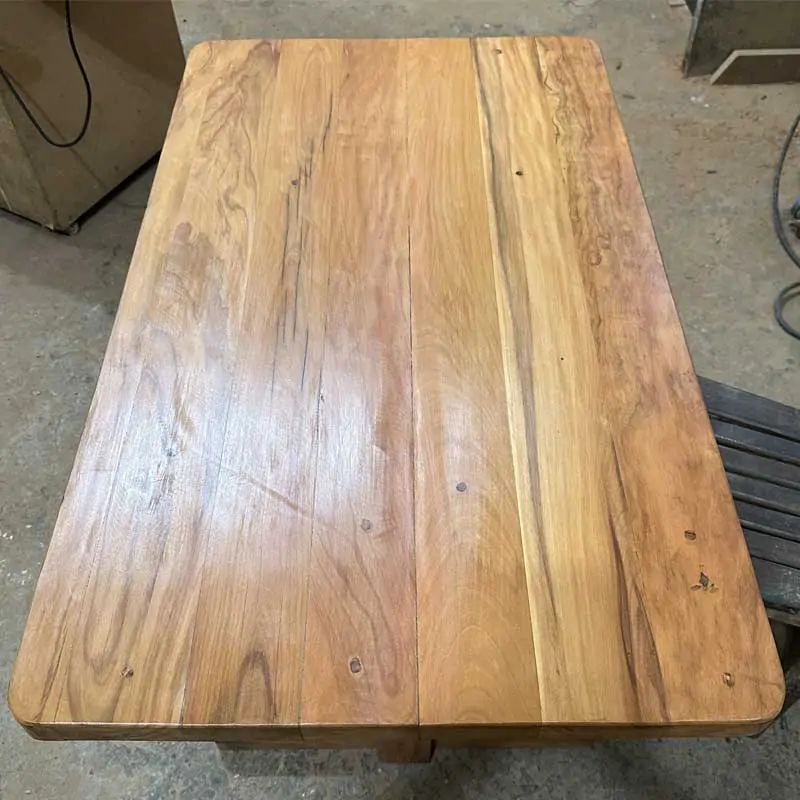 Este móvel é feito com madeira de demolição, portanto podem ter ranhuras ou marcas de prego típico do produto.