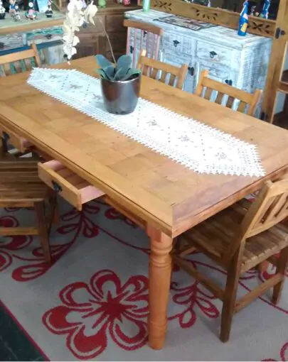 • MESA EM MOSAICO MAQUINADA DE PEROBA ROSA 2.00x1.00x0.80