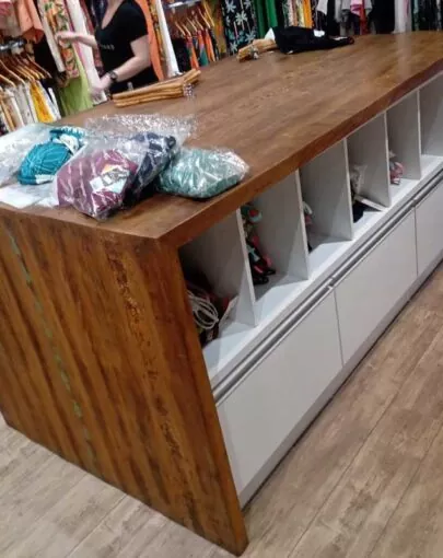 Este móvel é feito com madeira de demolição, portanto podem ter ranhuras ou marcas de prego típico do produto.
