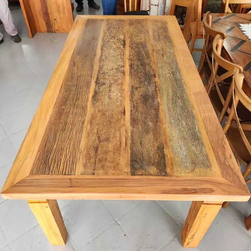 MESA PÉ DIMANTE MAQUINADA NOS PÉS E CENTRO DO TAMPO RÚSTICO DE DEMOLIÇÃO2.00×1.00×0.80