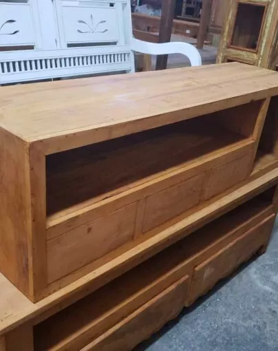 Este móvel é feito com madeira de demolição, portanto podem ter ranhuras ou marcas de prego típico do produto.