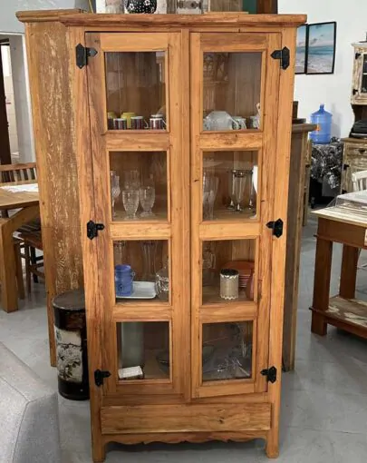 • CRISTALEIRA COM GAVETA DE PEROBA ROSA MAQUINADA
