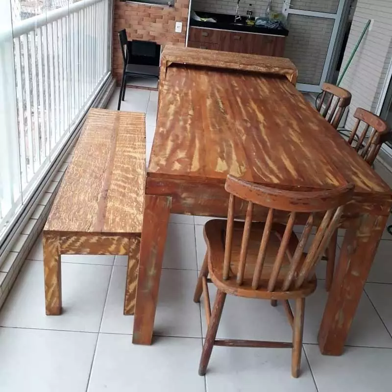 Este móvel é feito com madeira de demolição, portanto podem ter ranhuras ou marcas de prego típico do produto.