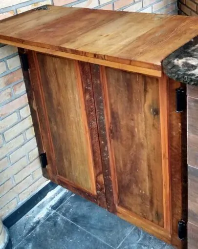 Este móvel é feito com madeira de demolição, portanto podem ter ranhuras ou marcas de prego típico do produto.