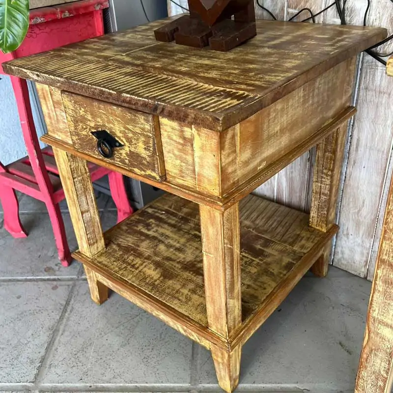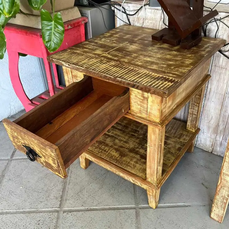 Este móvel é feito com madeira de demolição, portanto podem ter ranhuras ou marcas de prego típico do produto.