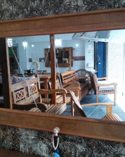 Este móvel é feito com madeira de demolição, portanto podem ter ranhuras ou marcas de prego típico do produto.