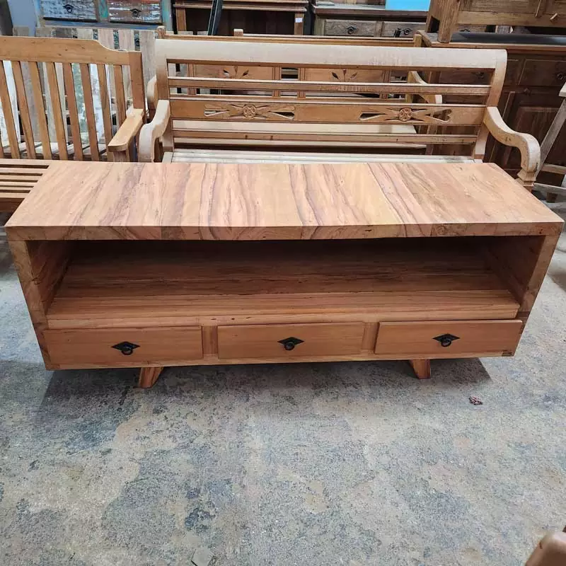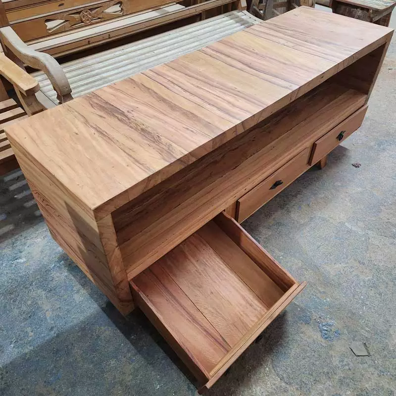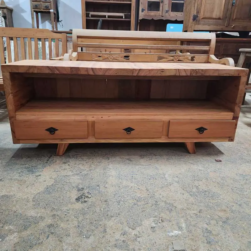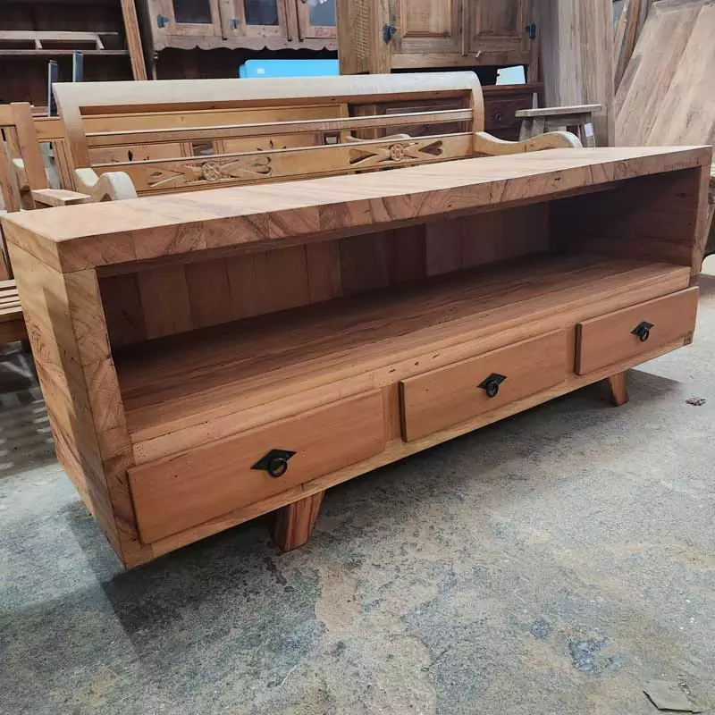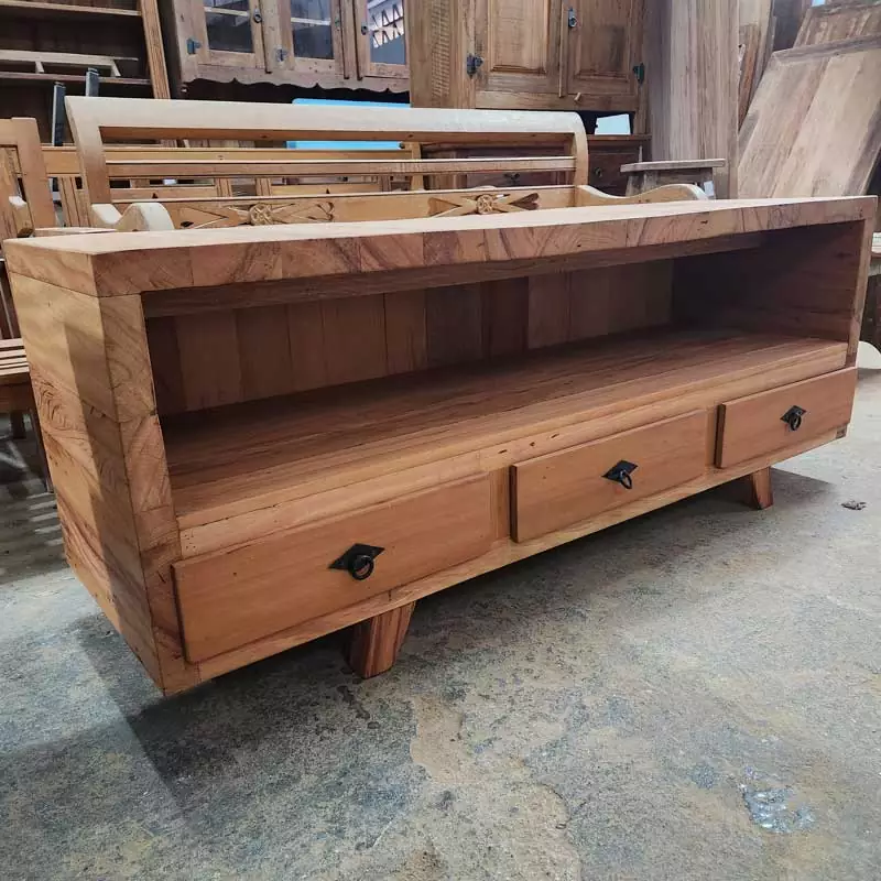 Este móvel é feito com madeira de demolição, portanto podem ter ranhuras ou marcas de prego típico do produto.