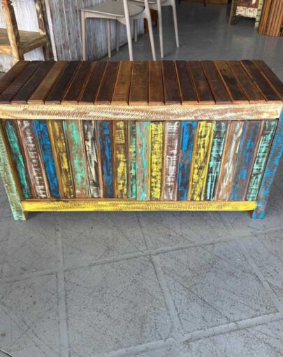 Este móvel é feito com madeira de demolição, portanto podem ter ranhuras ou marcas de prego típico do produto.