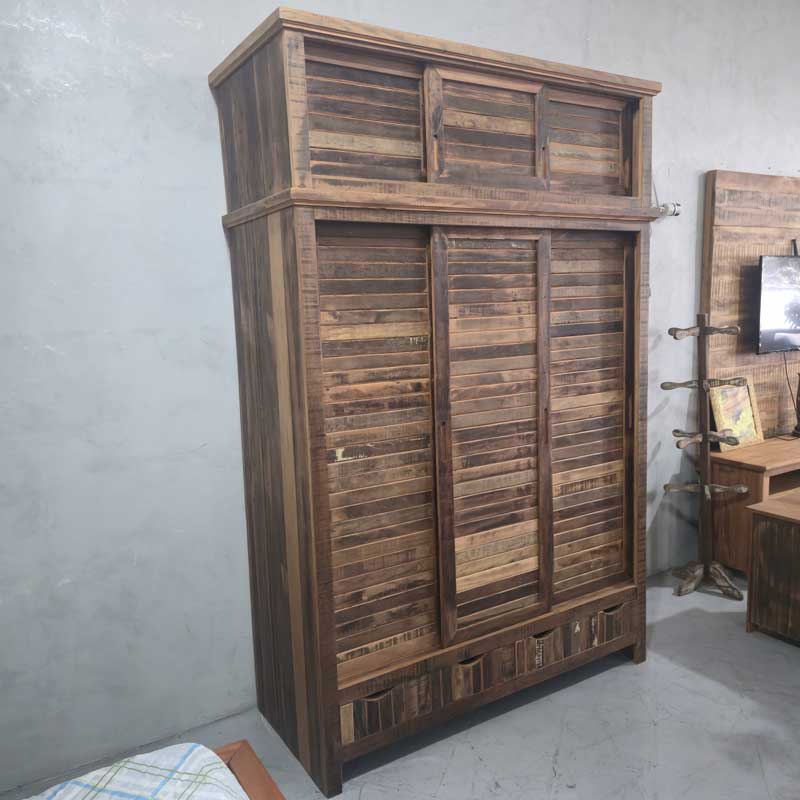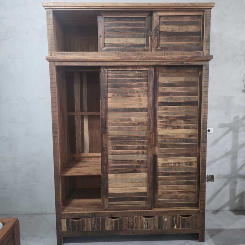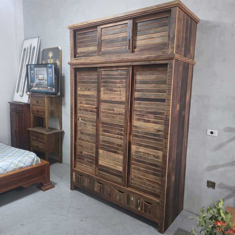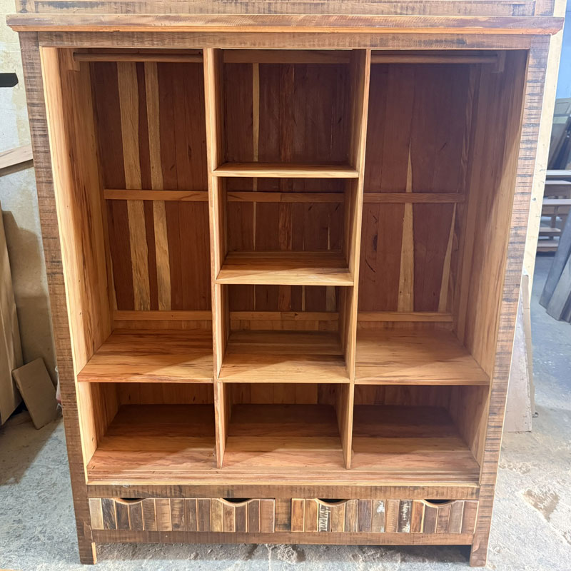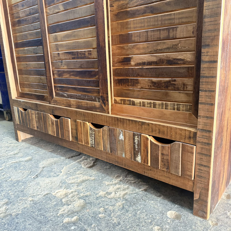 Este móvel é feito com madeira de demolição, portanto podem ter ranhuras ou marcas de prego típico do produto.