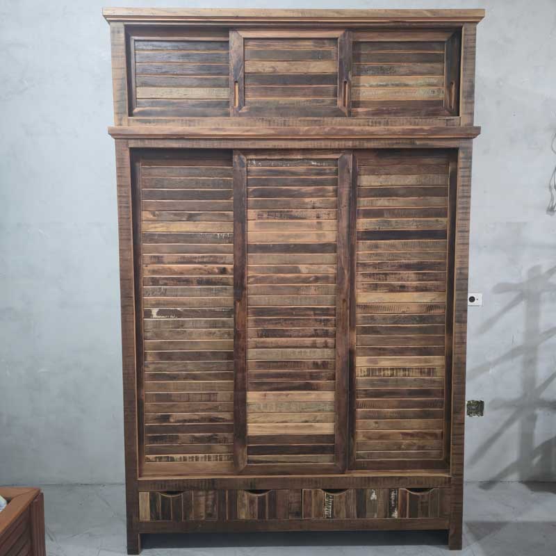 Este móvel é feito com madeira de demolição, portanto podem ter ranhuras ou marcas de prego típico do produto.