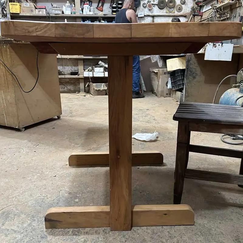 Este móvel é feito com madeira de demolição, portanto podem ter ranhuras ou marcas de prego típico do produto.